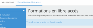 3. Onglet Formations en libre accès – Saisir »Transformer la voie professionnelle »
